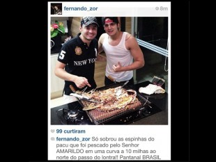 Nesta quinta-feira (14), Luan compartinhou uma foto de Fernando no Twitter. Na imagem, os dois sertanejos aparecem depois de terem comido um pacu inteiro, pescado no Pantanal. E Fernando ainda comemorou no microblog.